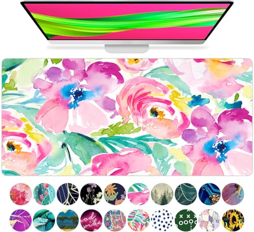 French KOKO Large Mouse Pad Desk Mat Desk Pad Keyboard School Essentials Office Decor Big Extended Laptop Protector Computer Accessories Pretty Mousepad Women Girls Pink Flowers XL Gift
