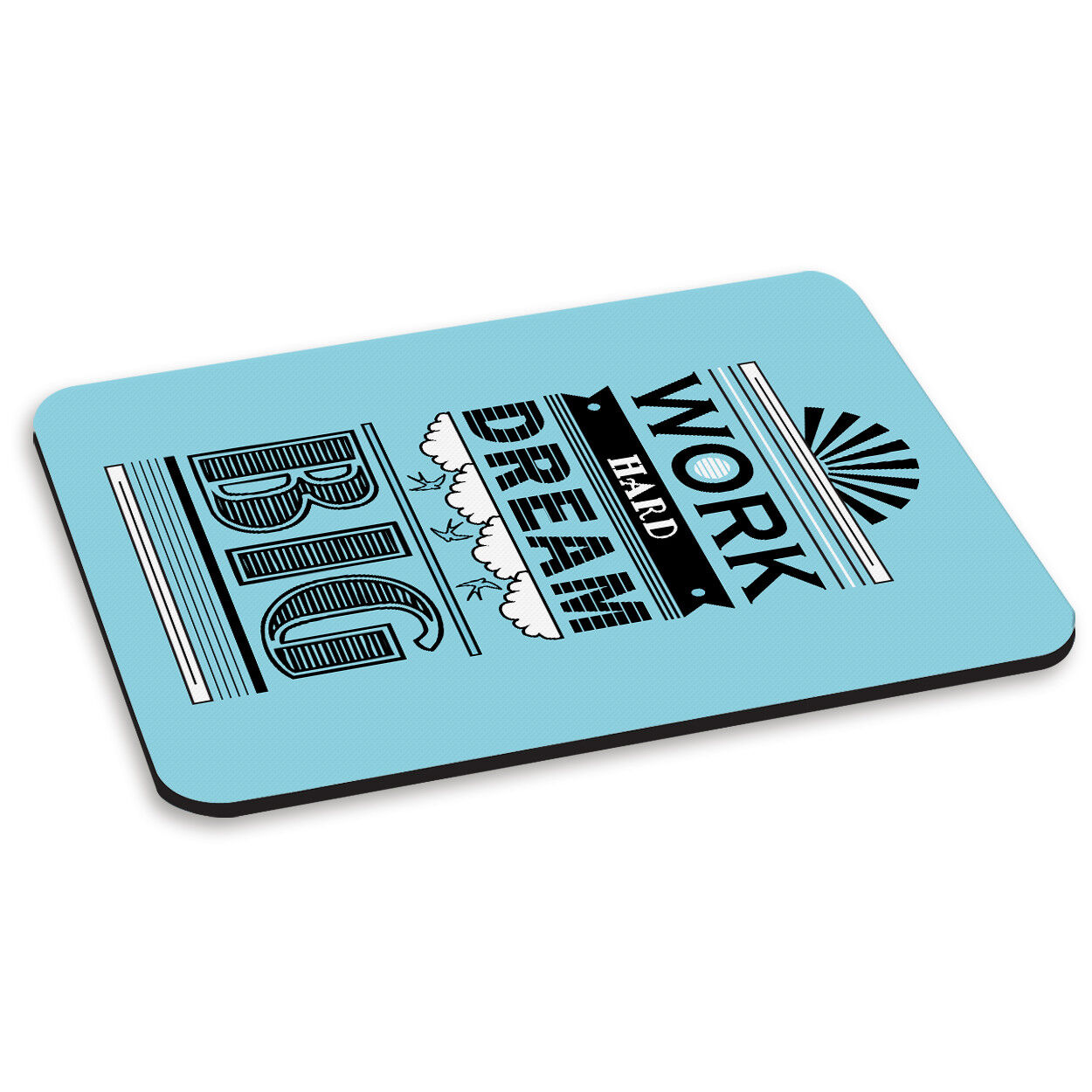 WORK HARD DREAM BIG PC COMPUTER MOUSE MAT PAD - Quote Blue Funny