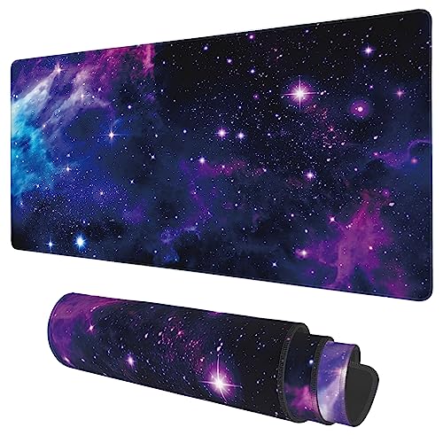 KOAIWPAE Desk Mat, Galaxy Nebula Universe Space Extended Gaming Mouse Pad Large, 35.4"x15.7" Big Mouse Pad with Non-Slip Base and Stitched Edge, Long Computer Keyboard Mouse Mat for Home Office Work