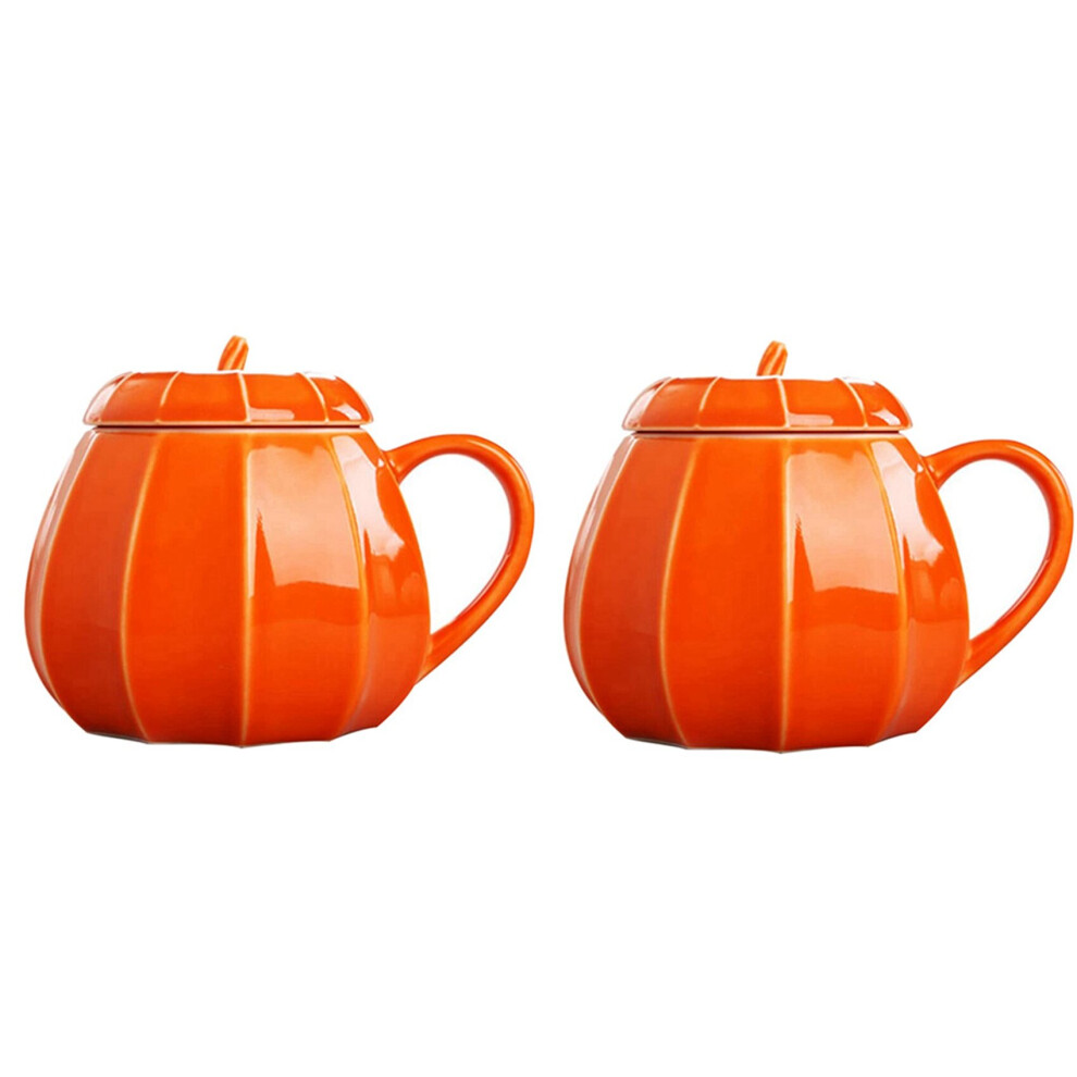 2X Mug Pumpkin Mug with Lid - Ceramic Decorations Ornament Coffee Mugs Big Cute Fall Cups Teacup - Birthday Gift Idea