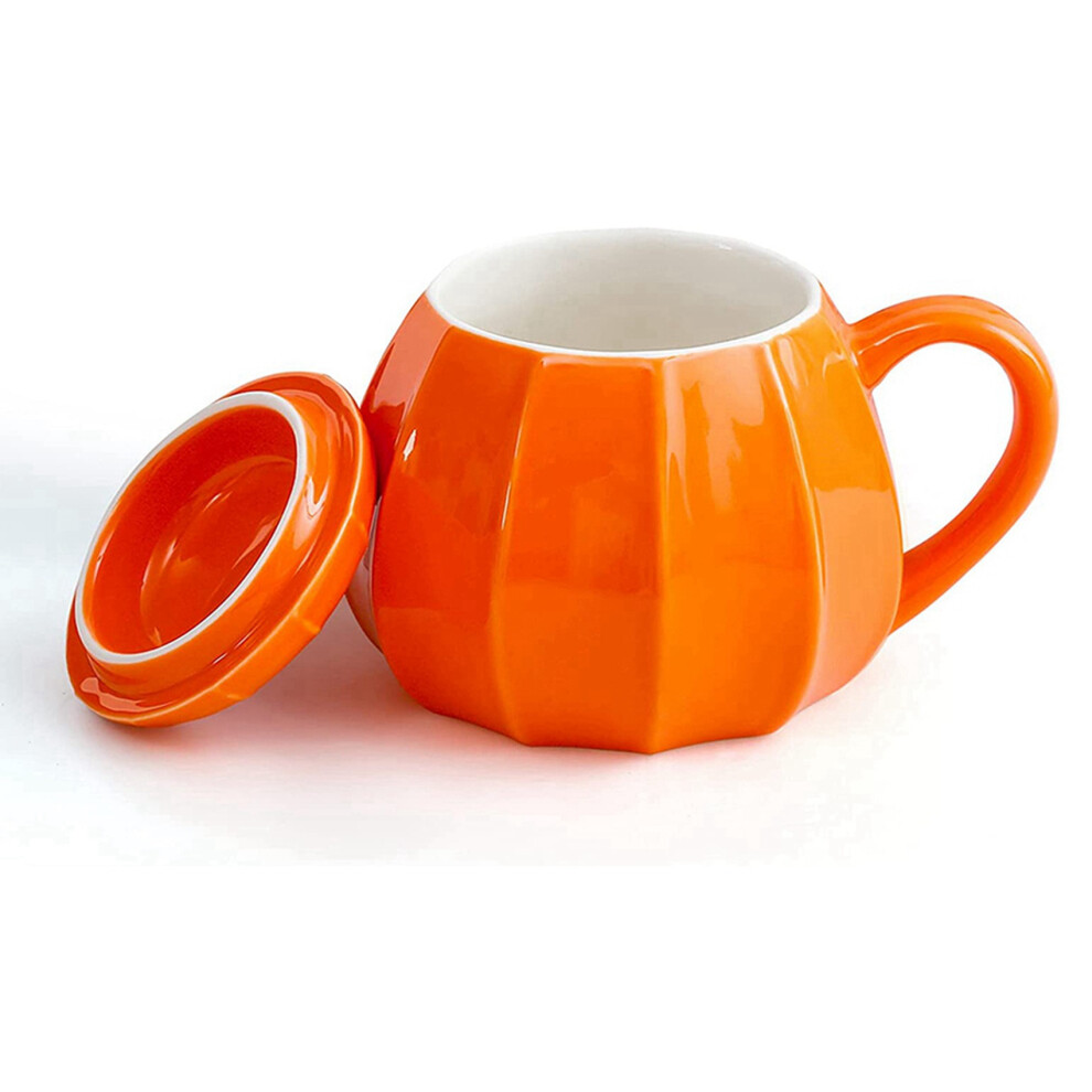 Mug Pumpkin with Lid - Ceramic Decorations Ornament Coffee Mugs Big Cute Fall Decor Cups Teacup Birthday Gift Idea