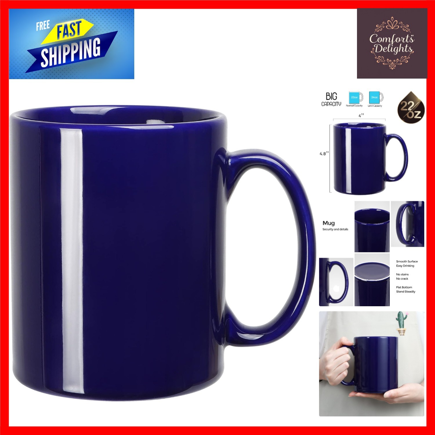 Large Coffee Mug, 22 OZ Coffee Mugs, 650ml Smooth Ceramic Tea Cups, Big Capac...