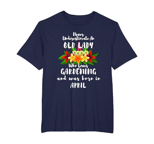 Never Underestimate an Old Lady Who Loves Gardening April T-Shirt, Men's Big and Tall, Navy Blue, 5X Tall