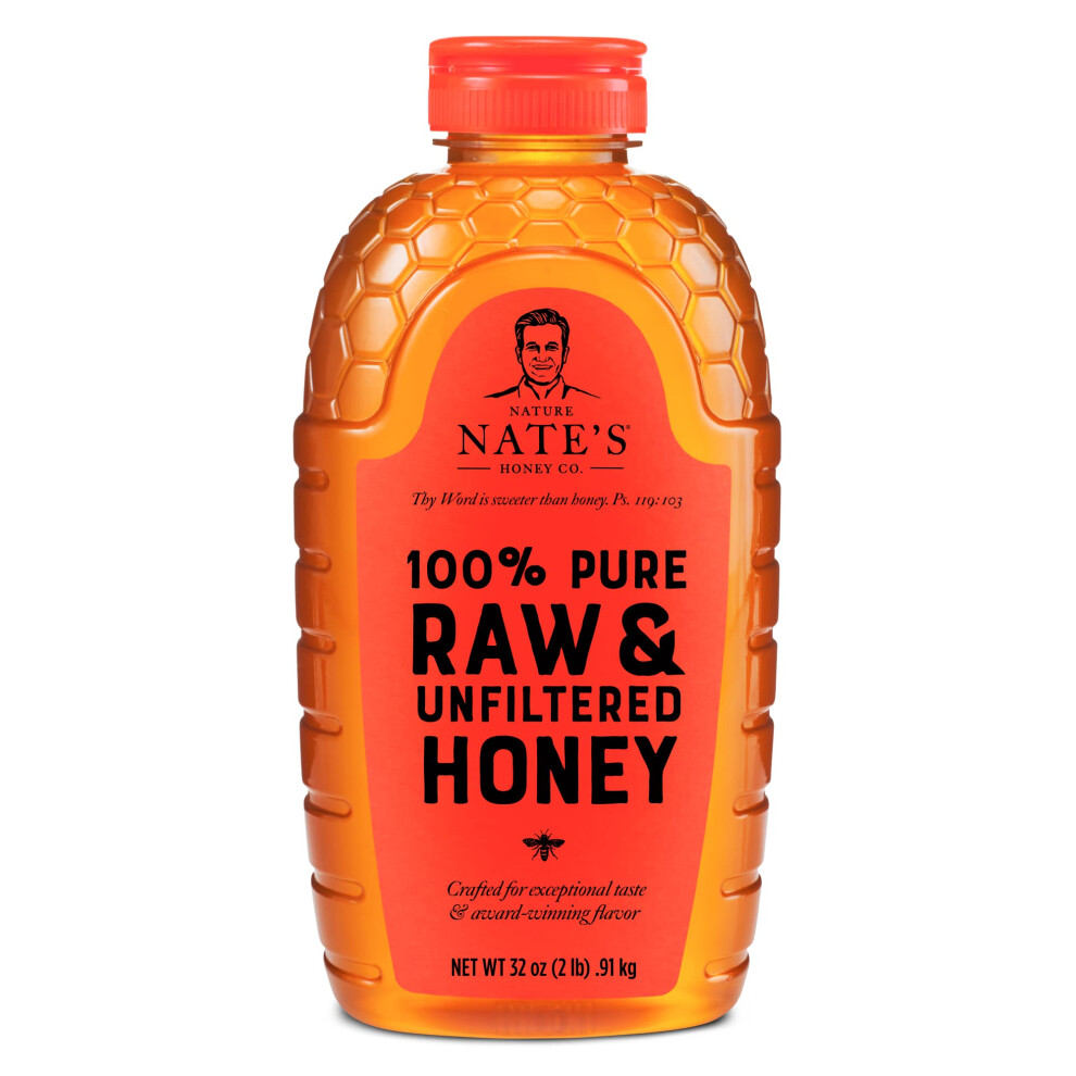 Nature Nate's 100% Pure Raw Unfiltered Honey 32-oz Squeeze Bottle Gluten Free Enjoy Honey's Balanced Flavors Wholesome Benefits Sweet Natural Goodness