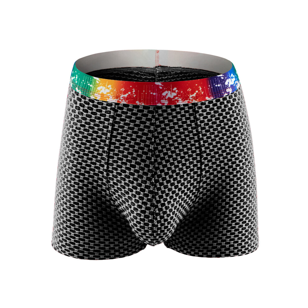 Sexy Men Underwear Boxers Breathable Mesh Masculina Boxershorts Rainbow Belt Male Underpants Cueca Big Penis Pouch Panties