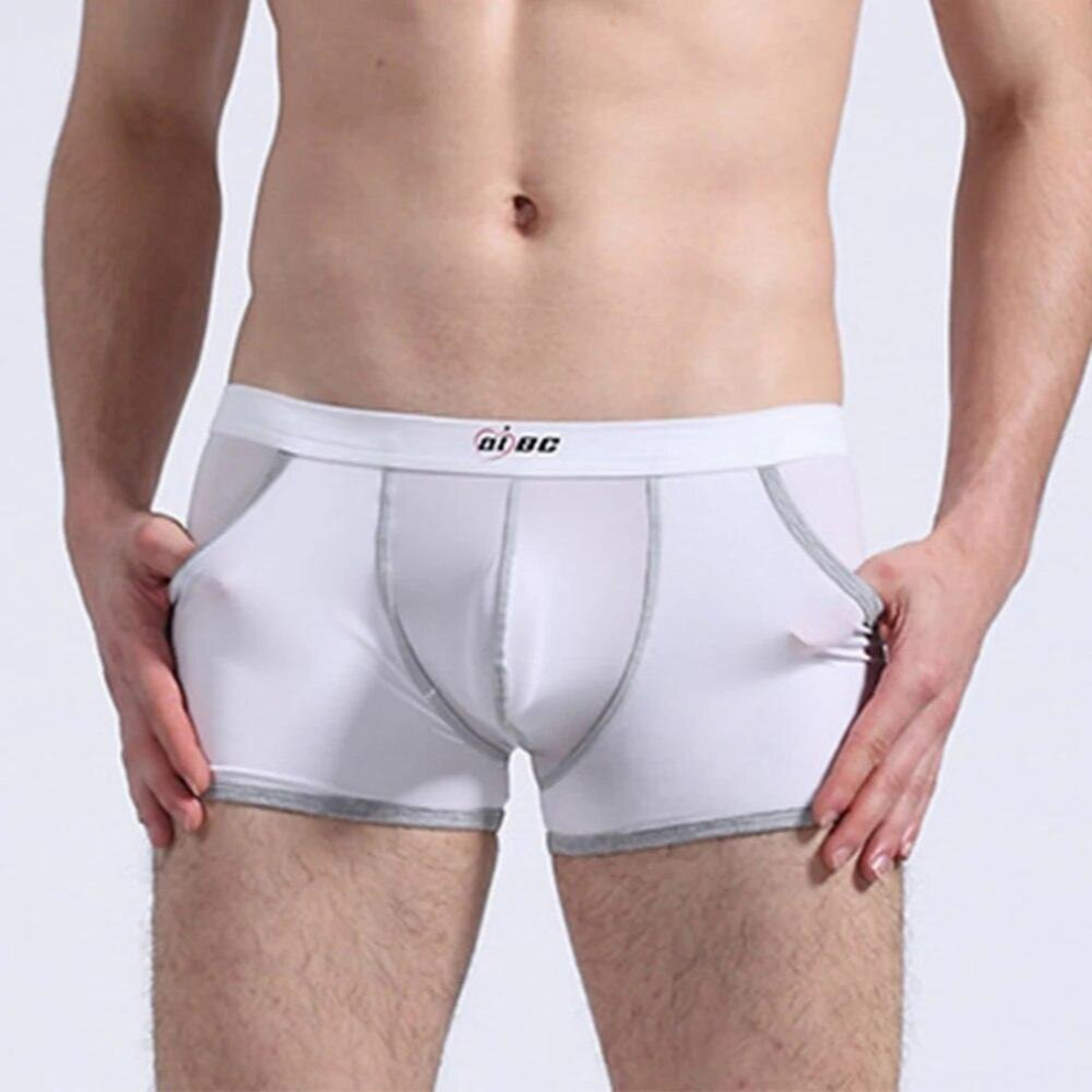 Men Ice Silk Boxer With Pocket Summer Breathable Trunks Big Penis Pouch Underpants Solid Mid Waist Underwear Transparent Panties