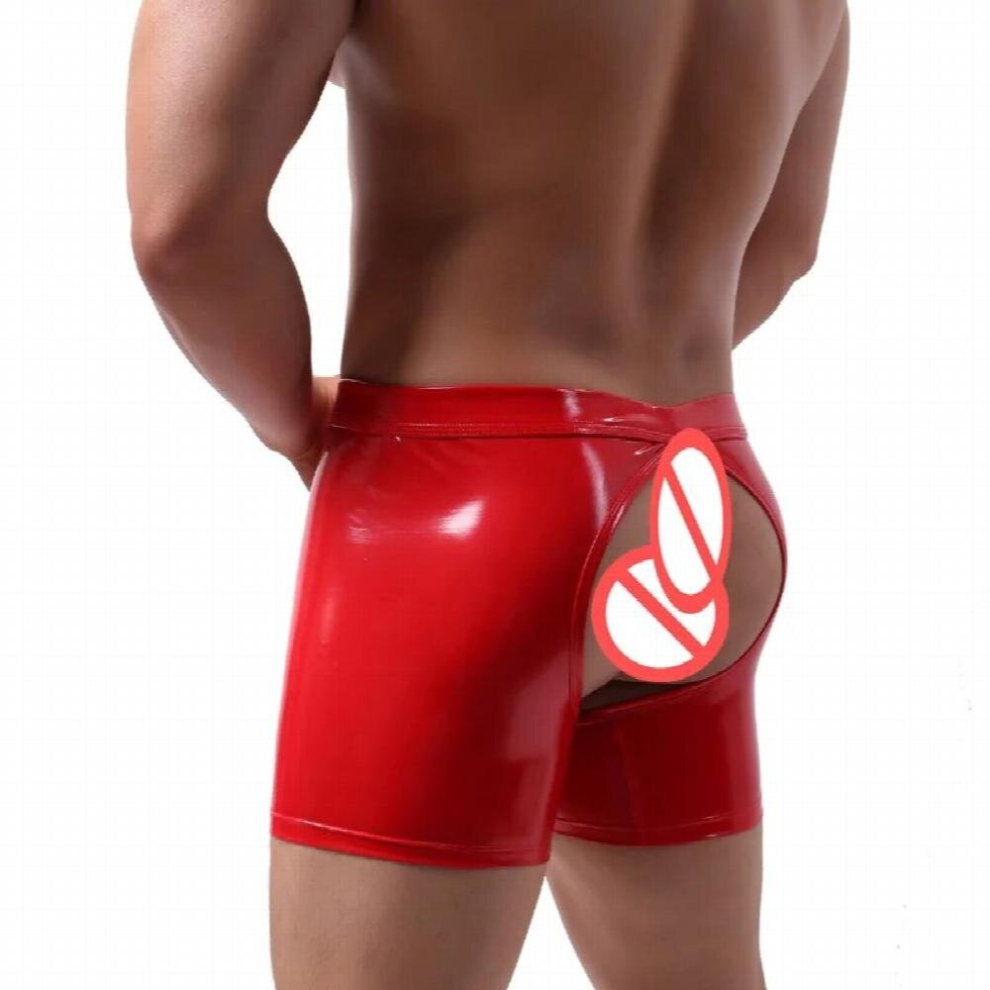 Men Penis Holes Boxers Gay Underwear Lingerie Sexy Temptation Button Open Big Penis Pocket PU Leather Low Waist Men Boxershorts