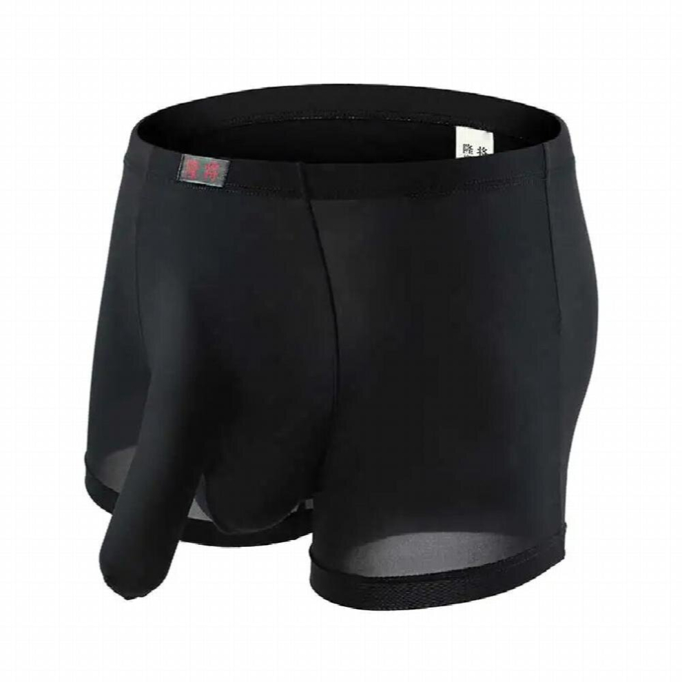 Man Sexy Boxers Big Penis Pouch Elephant Tube Briefs Breathable Ice Silk Scrotum Pocket Ultra-Low Gay Erotic Underwear U-Convex
