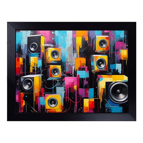 Cushioned Lap Tray with Bean Bag Base for Laptop & Eating – Speakers Abstract Design | Padded Lap Desk for Sofa, Bed & Work | Portable TV Dinner & Breakfast Tray, Easy Clean Surface