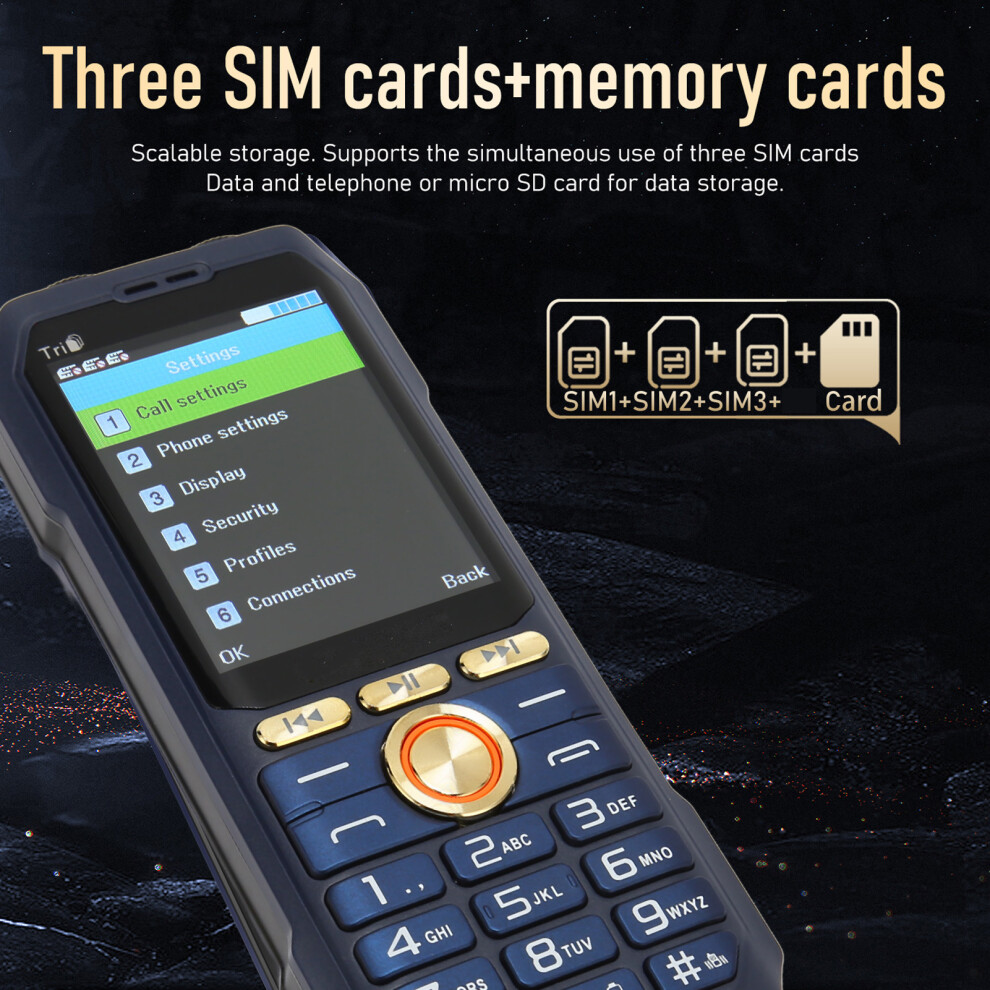 Unlocked Triple SIM Senior Cell Phone, Shockproof Water Resistant Mobile with Stereo Speakers and SOS Button, Big Keypad Phone for Elderly Users