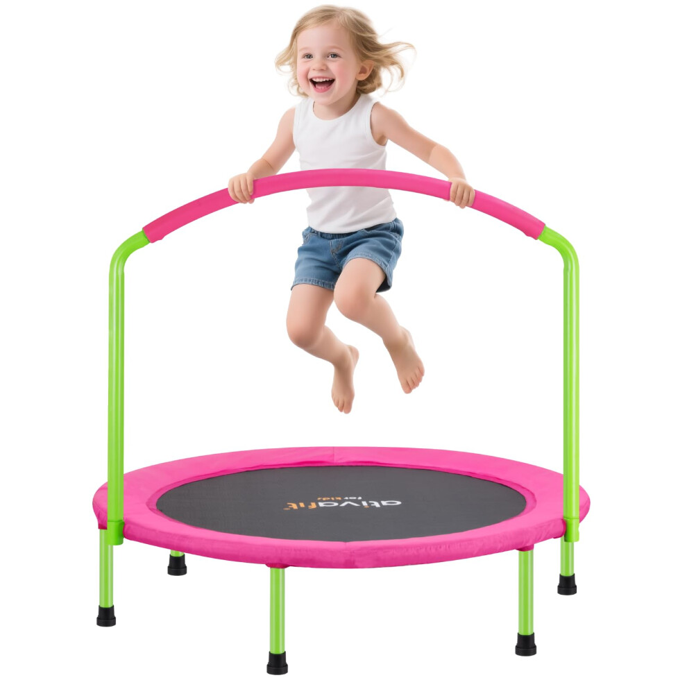 ATIVAFIT 36''Foldable Rebounder Band Big Handle Trampoline for Toddlers Kids With Super Safety Pad Foam Handle Oxford Padded Noise-Free Kids Cover Fun for Kids Indoor/Outdoor for 2-6 years old(Pink)