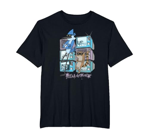 Regular Show TVs Stacked T-Shirt, Men's Big and Tall, Black, 6X Tall