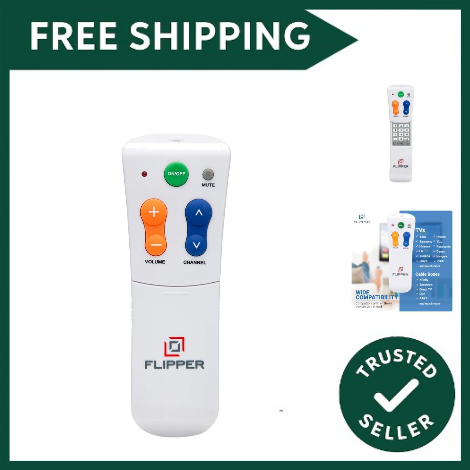 Flipper Big Button Universal TV Remote for Seniors, Dementia - TVs and Cable Set Top Boxes (STBs) - Simple Setup, Favorites, IR Devices Like Spectrum,