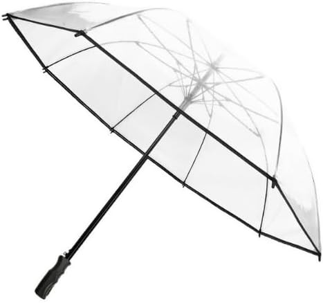 SMATI Lady’s Clear Big Birdcage Umbrella in Black Border, Transparent, Windproof, Auto Open, Crystal Style Handle, French Design, Dome Shape Umbrella