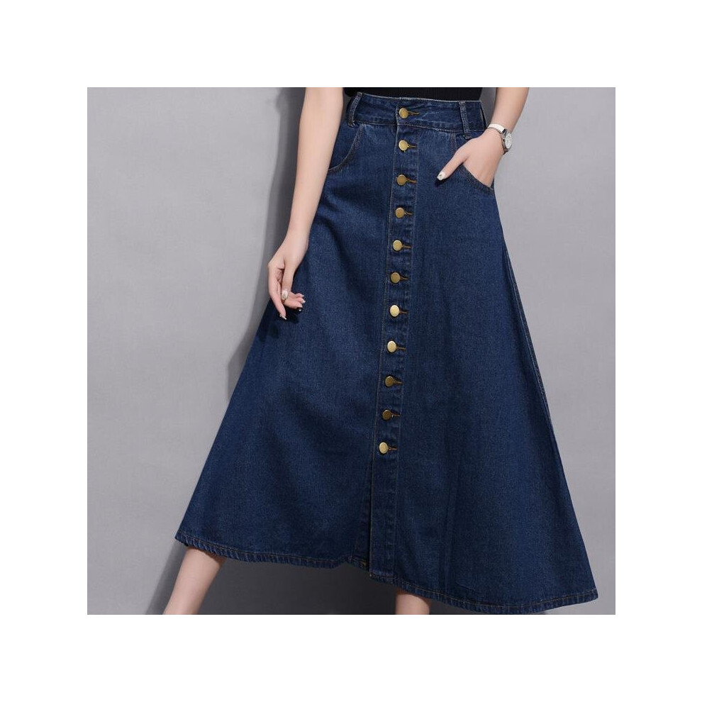 Women long skirt loose Pockets High Waist Single-breasted denim skirt A Big swing umbrella skirt XXXL