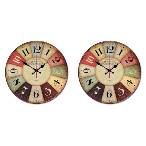 Buhdjfnke 12 Inch Retro Wooden Wall Clock Farmhouse Decor, Silent Non Ticking Wall Clocks Large Decorative - Big Wood Analog Battery Operated - Vintage Rustic Colorful Tuscan Country Outdoor
