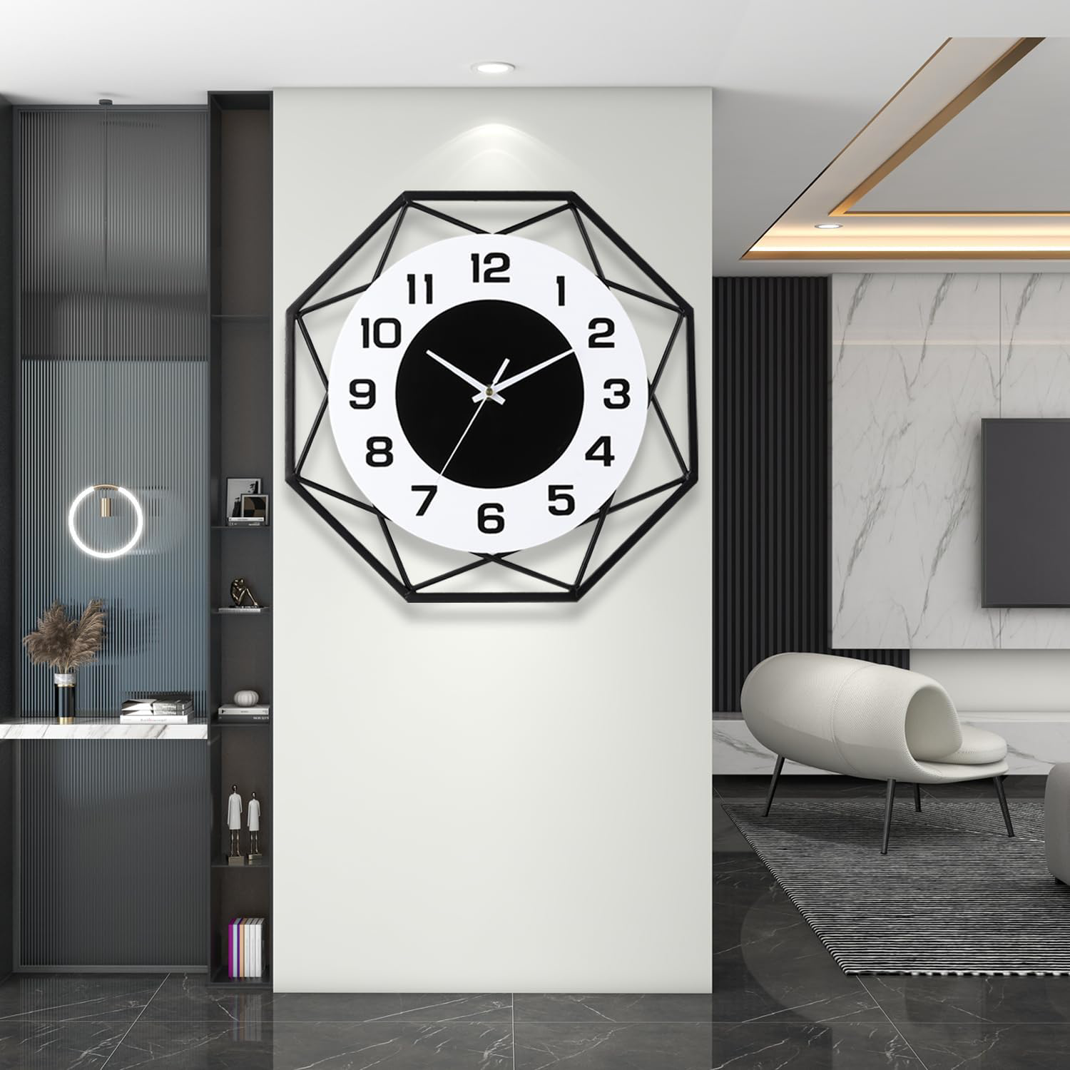 Large Wall Clock Two-toned Decorative Mid Century Silent Non-Ticking Big Clocks