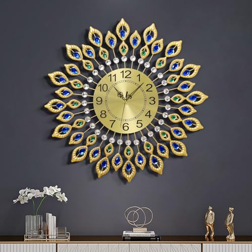 CWZZWS Gold for Living Room Decor, Large Silent Peacock s, Modern Wall Decor Big Timepiece, Round Sun Decorative Clocks,S