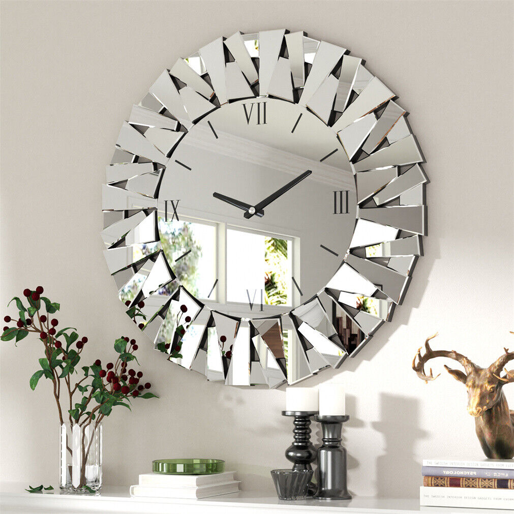 Battery Operated Quartz Wall Clock Silent Big Wall Clocks Mirrored Home Decor UK