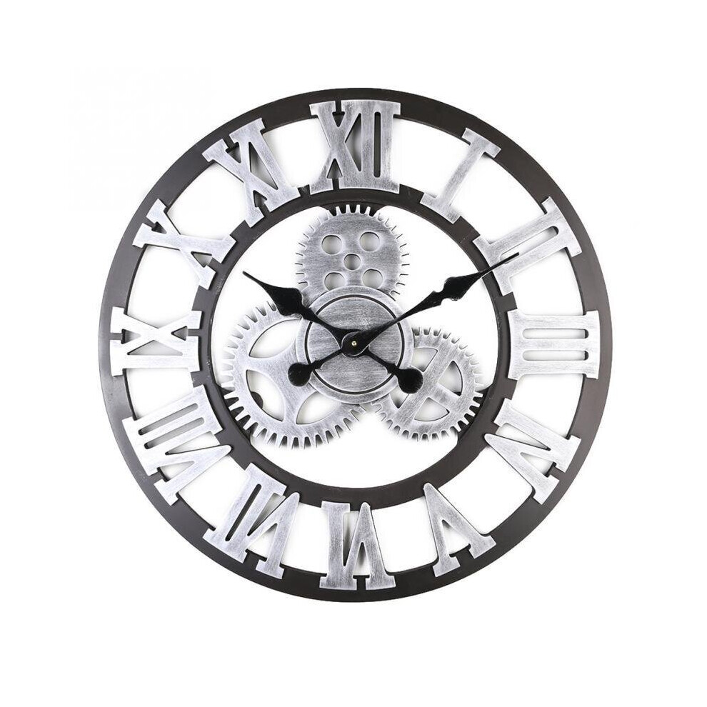(silver, 34 cm) 3d Retro Rustic Decorative Luxury Art Big Gear Wooden Vintage Large Handmade Oversized Wall Clocks