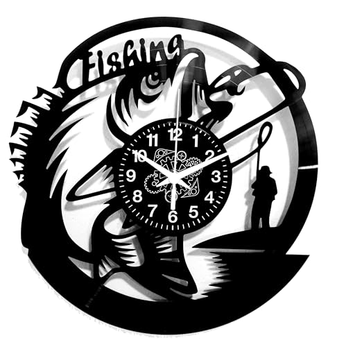 Instant Karma Clocks | Fishing Wall Clock with Fisherman and Big Catch Silhouette – Wall Decoration – Home Office Silent Non-Ticking