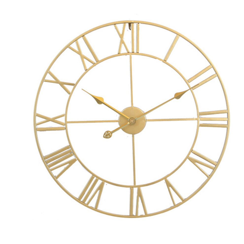 Modern Metal Roman Numeral Wall Clock, Oversized Big Champagne Gold Wall Clocks Accurate Quartz Movement European Simple Design Durable Rust Resistant
