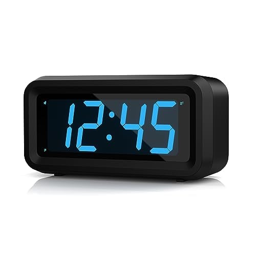 KWANWA Alarm Clock, Digital Clock Battery Operated with Big 1.2'' LED Time Display,Adjustable Brightness,12/24Hr,Portable Cordless,Alarm Clocks Bedside for Travel/Wall/Shelf/Desk (Blue display)