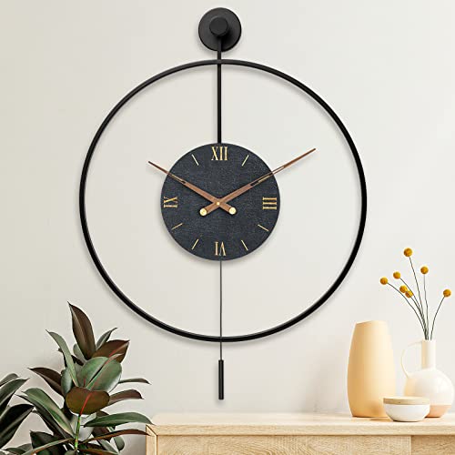 SHUNZY Decorative Wall Clock for Living Room Decor, Large Modern Wall Clocks with Pendulum Battery Operated for Bedroom Office Kitchen Home, 22.4 Inch Big Silent Wall Clock Non Ticking