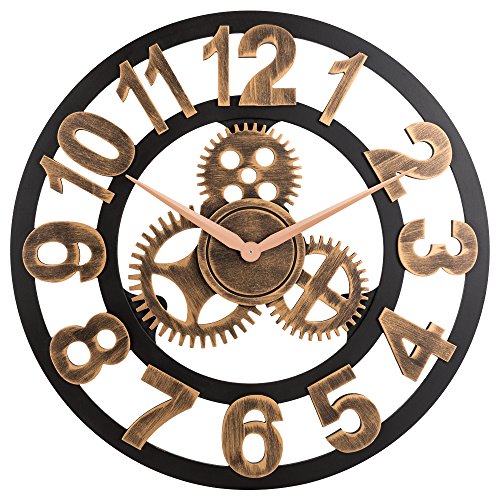 Oldtown Clocks Noiseless Silent Gear Wall Clock 3D (Retro Rustic Country Decorative Luxury Art Big Wooden Vintage for House Warming Gift) 23 inches Number-Anti-Bronze