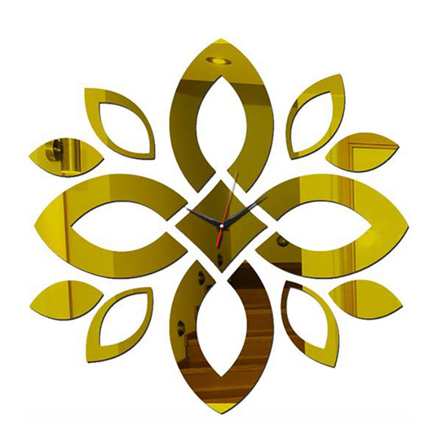 Pqahffowr Wall Clock Big Flower Mirror Sticker Top Fashion Frame Clocks and Watches Luxury Home Decor Gift-Mirror Gold