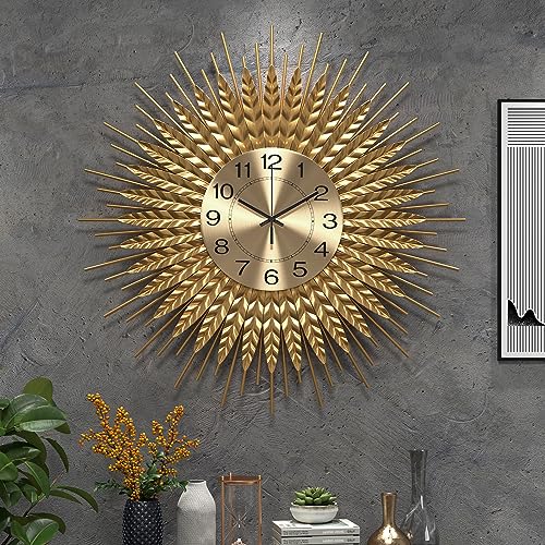 XJBTBA Large Metal Clocks Big Fancy Decorative with Silent Movement Style Wall Clock Art for Living Room Bedroom Office Decor,Gold,111 3.5