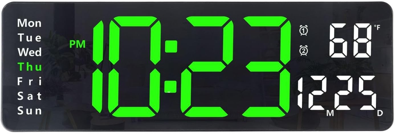 Plumeet Digital Wall Clock, 13 Inches LED Wall Clocks with Remote Control, Big
