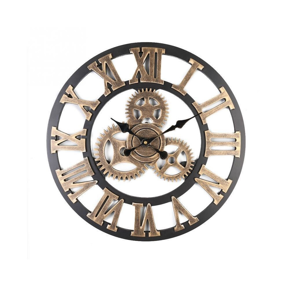 (gold, 34 cm) 3d Retro Rustic Decorative Luxury Art Big Gear Wooden Vintage Large Handmade Oversized Wall Clocks