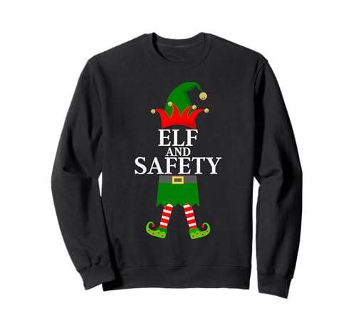 The Elf's Wardrobe Unisex Big Kid and Above Adults Sweatshirt - Elf and Safety - Funny Matching Family Group Christmas Sweatshirt - Black - Small
