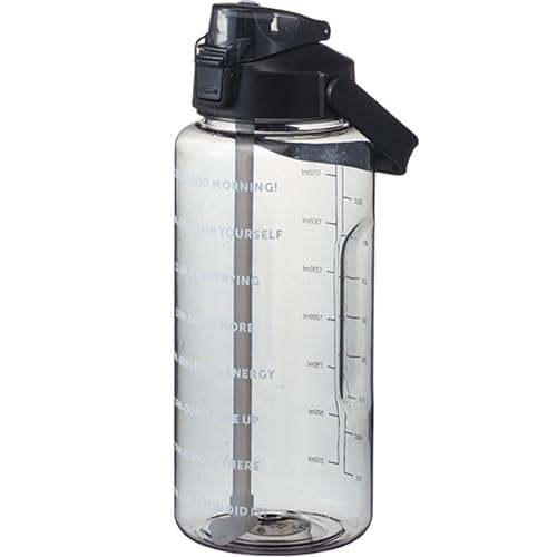 Big 2l water bottle with straw with Time Marker, Handle, Leakproof & BPA-Free -