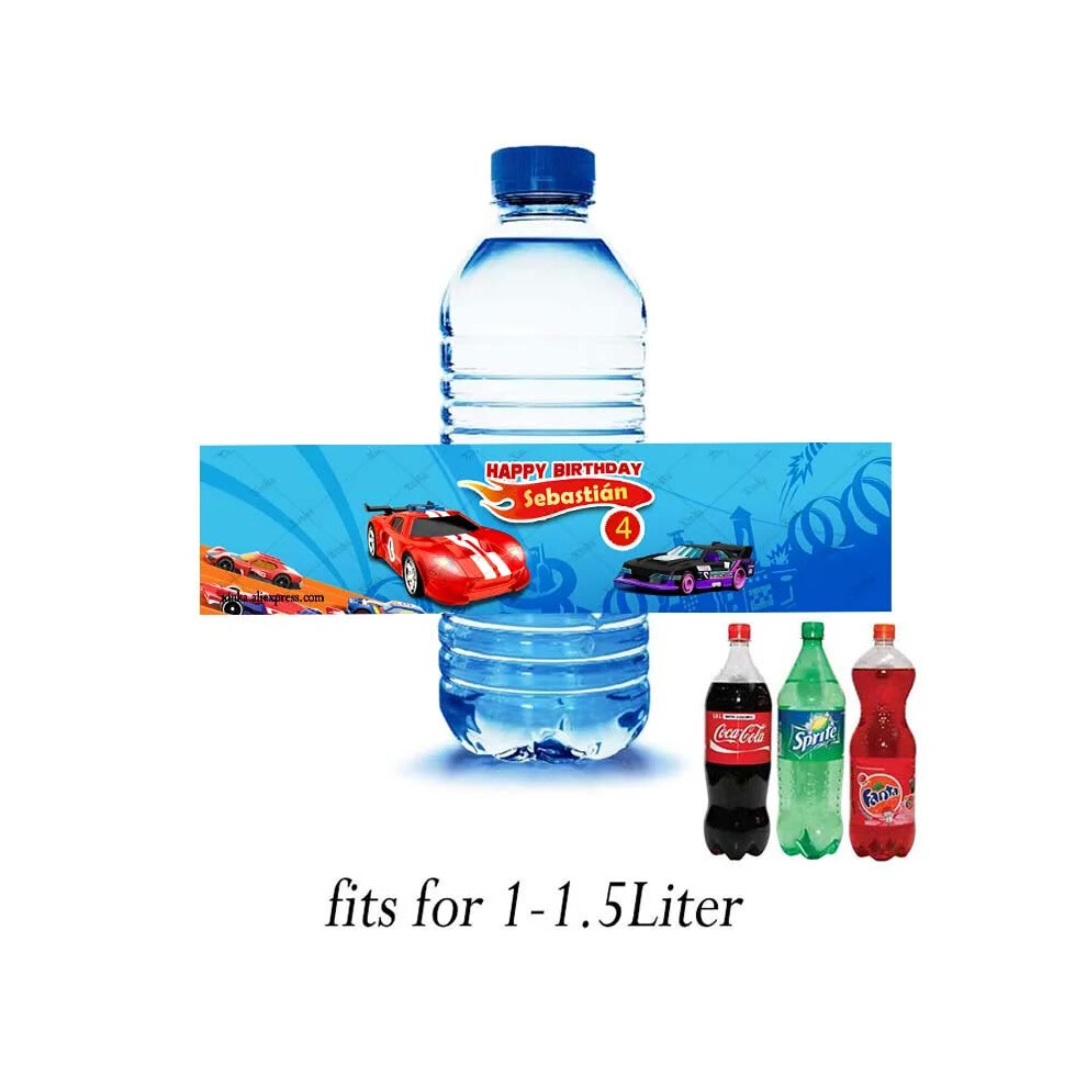 (Big Water bottle, 8pcs) Custom Race Car Theme Mini Chocolate Bar Adhesive Labels Candy Wrapper Sticker Personalized Hot Wheels Baby Shower Chips Bag