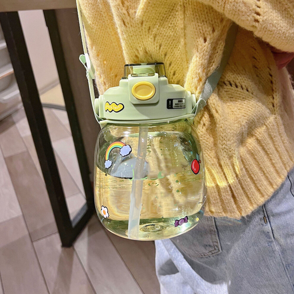 Colcolo Big Water Bottle Water Jug 1100ml Cartoon with Shoulder Strap Travel Cup Large Belly Straws Cup for Camping School Boys Girls
