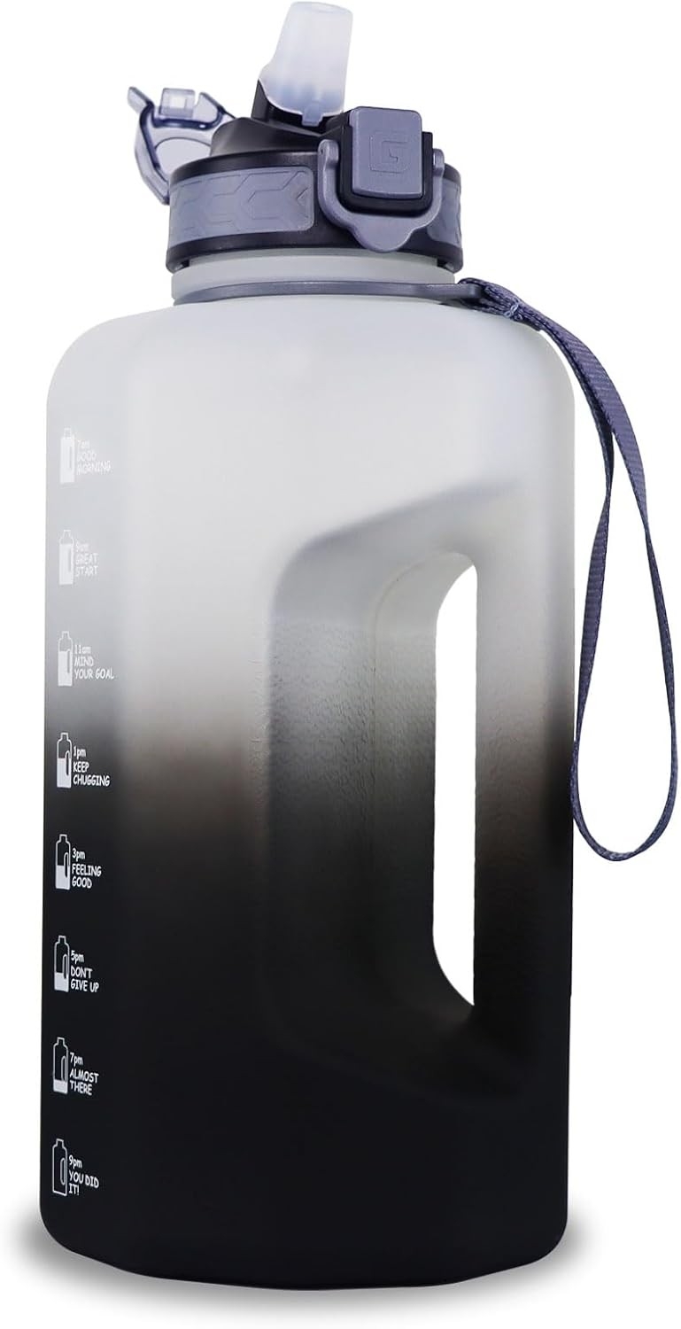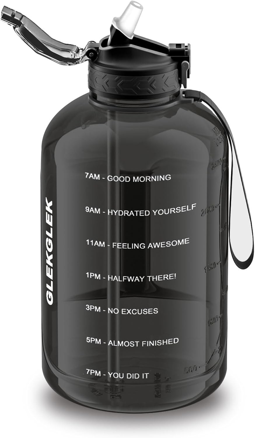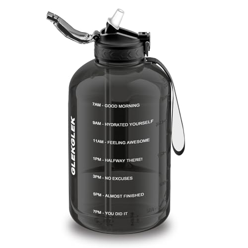 GLEKGLEK Big Water Bottle 3 Liter with Straw Clear Motivational Time Marker Dri