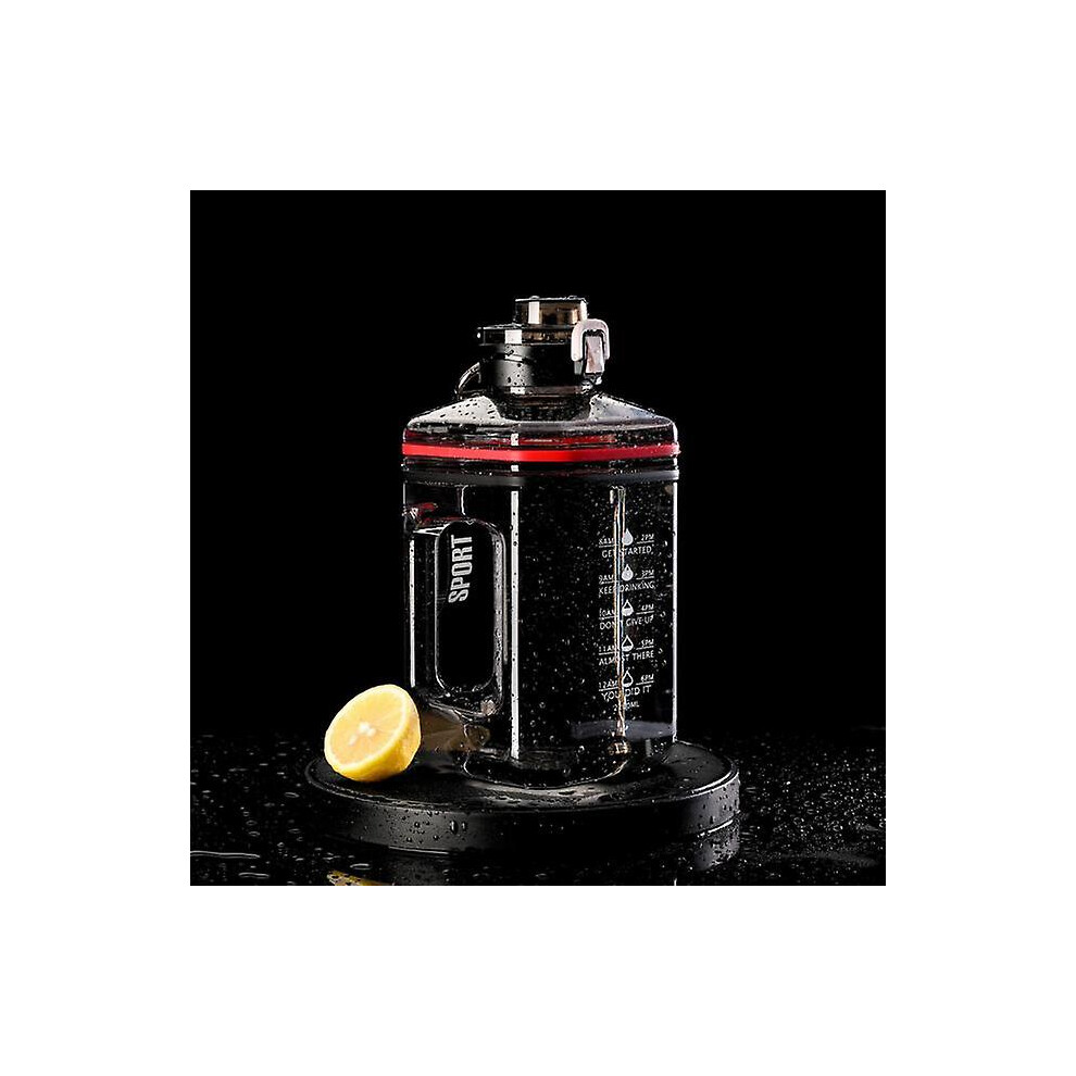 (Black) 2 Liter Water Bottle Large Capacity Sports Square Sports Water Cup Ton Ton Bucket Cup Portable Big Water Bottle