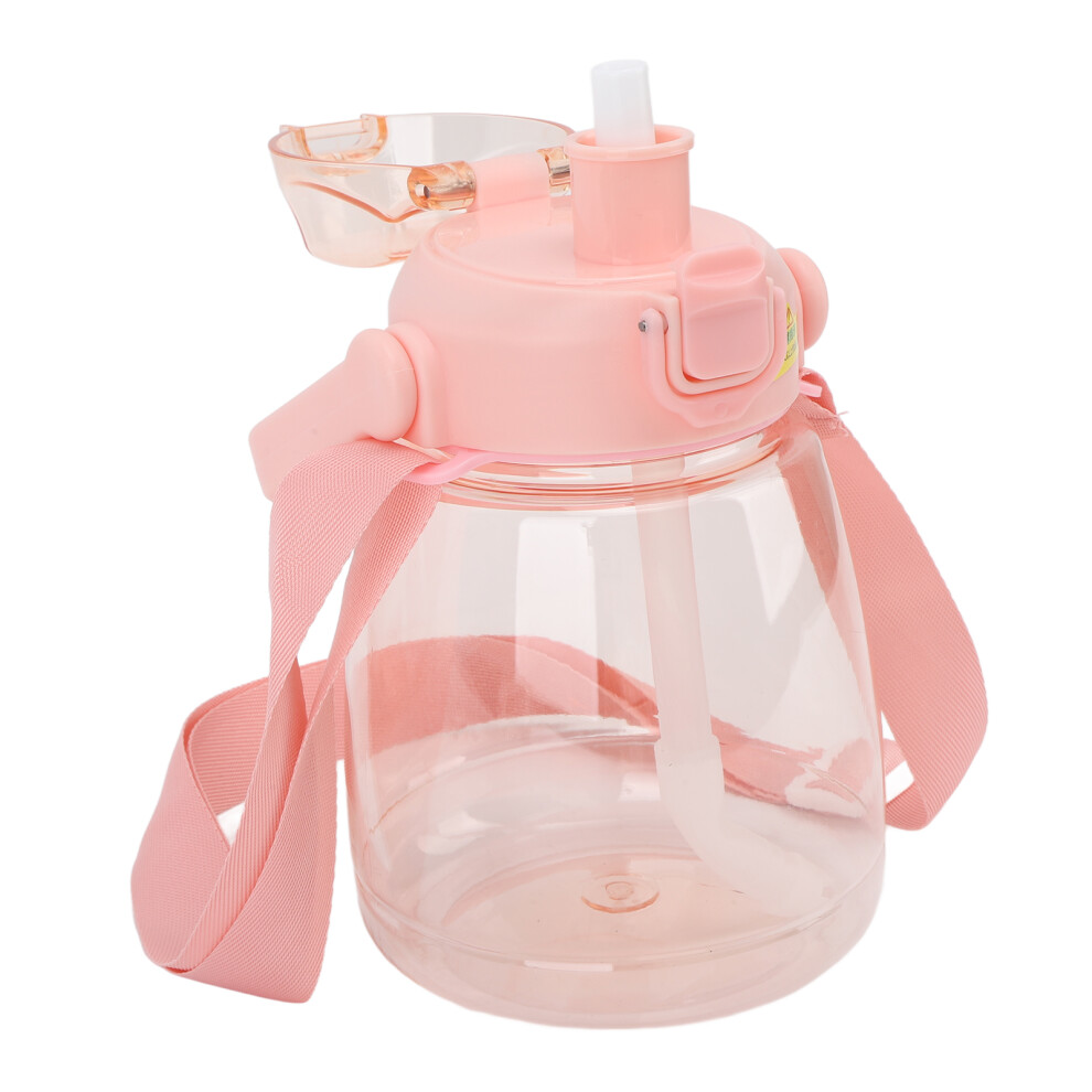 1100ml Water Bottle with Straw Plastic Water Jug with Strap Leakproof Spill Proof Big Belly Water Bottles for Kids Women Pink