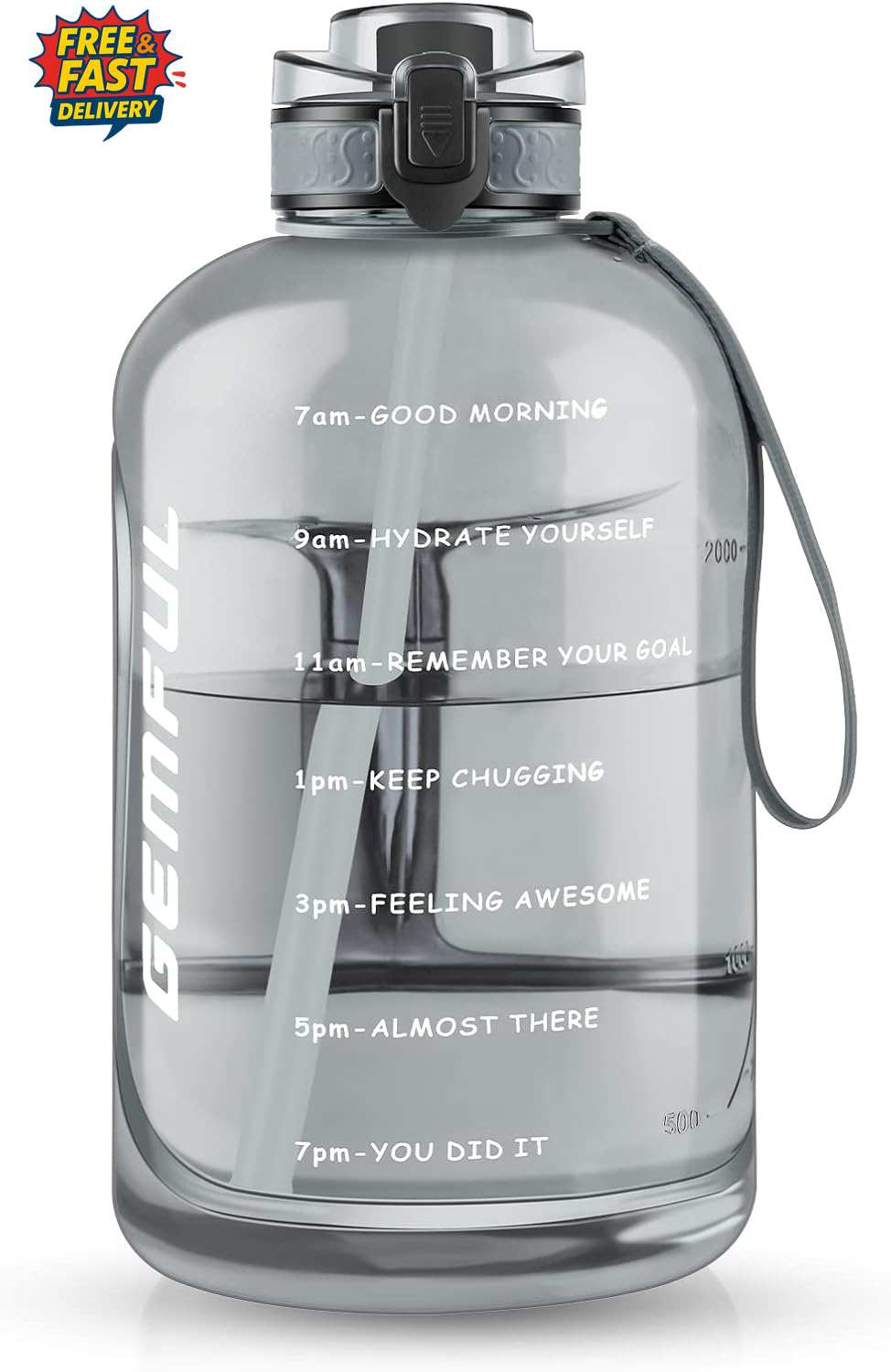 2 Litre Water Bottle with Straw - 2L Water Bottles with Time Marker- 64 oz Big Water Bottle Motivational - Large Water Bottle with Straw- Half Gallon