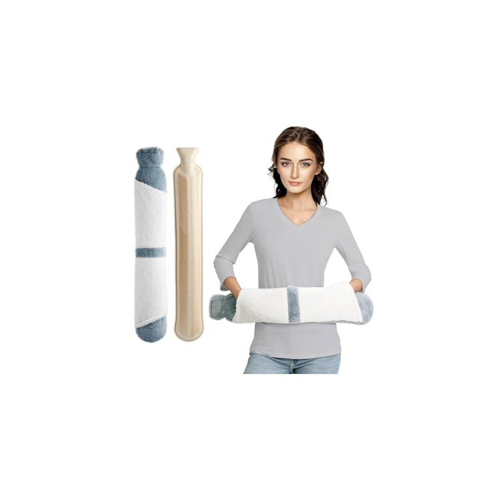 Long Hot Water Bottle with Hand Pocket Cover, 2L Large Rubber Hot Water Bottles with Zipper Cover Easy Take on/Off, Extra Big Wearable Hot Water Bag
