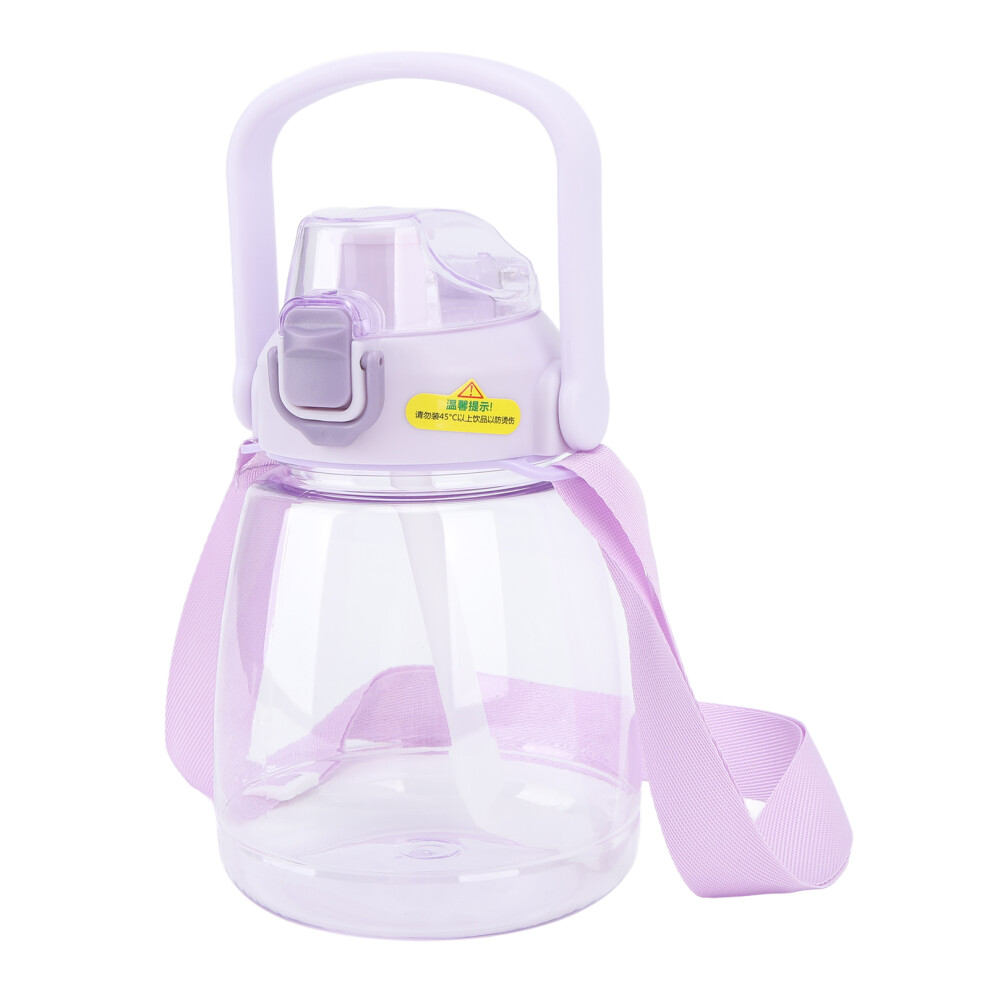 1100ml Water Bottle with Straw Plastic Water Jug with Strap Leakproof Spill Proof Big Belly Water Bottles for Kids Women Purple