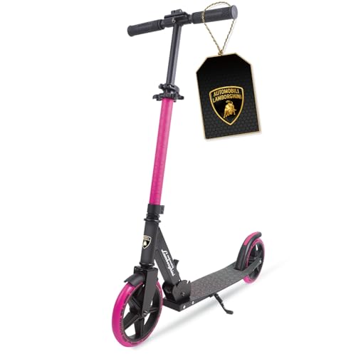Lamborghini Kick Scooter for Kids Ages 8-12, 200mm Big Wheels, Foldable, Kickstand, Aluminum, 2-Wheel Scooters for Boys & Girls, Vibrant Pink, 220 lbs