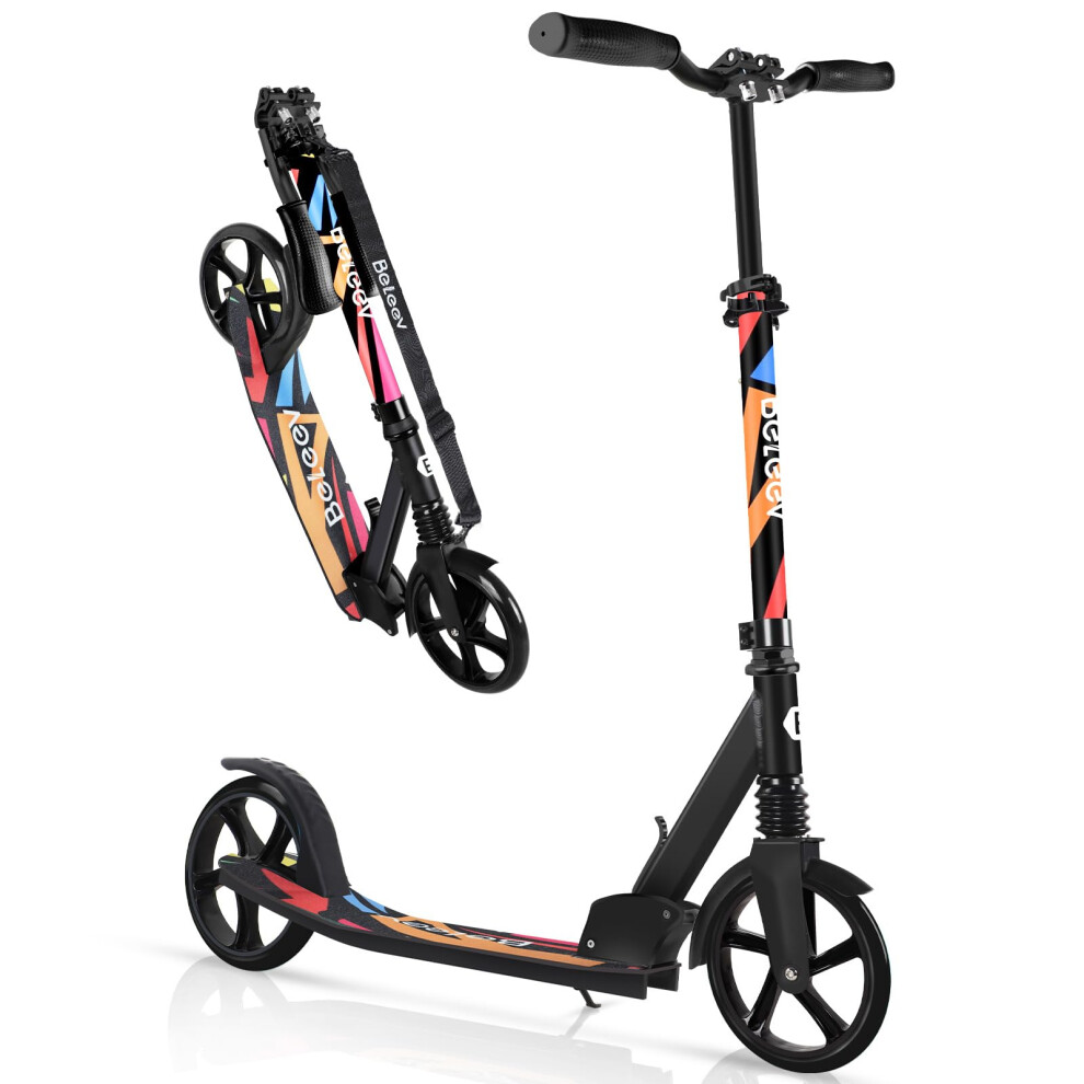 BELEEV Scooters for Kids Ages 10+, Folding 2 Wheel Scooter for Adults Teens, 200mm Big Wheels, 4 Adjustable Handlebar, Front Suspension, Lightweight