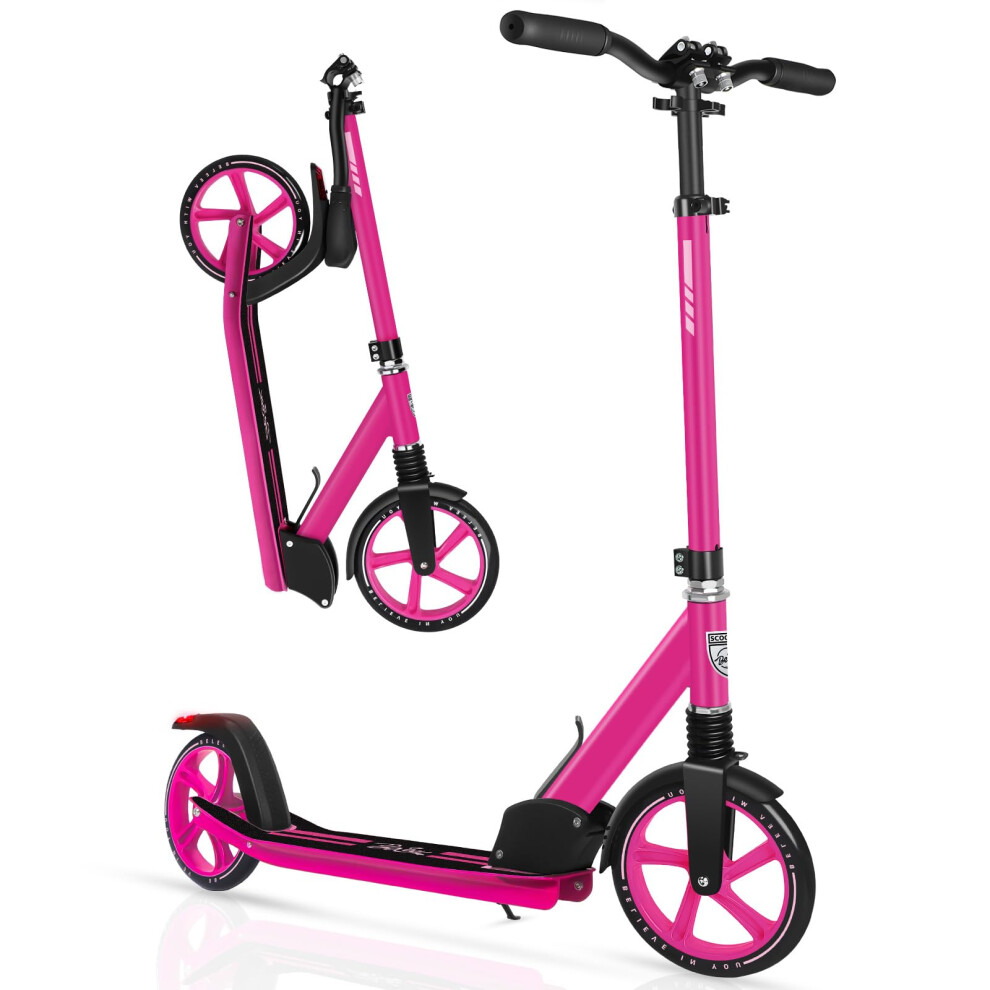 BELEEV Scooter for Kids Ages 6+, 200mm Big Wheel adult Scooters for Boys and Girls, 4 Adjustable Handlebar, Front Suspension, 2 Wheels Scooter with Carry Strap, up to 100Kg(Pink)