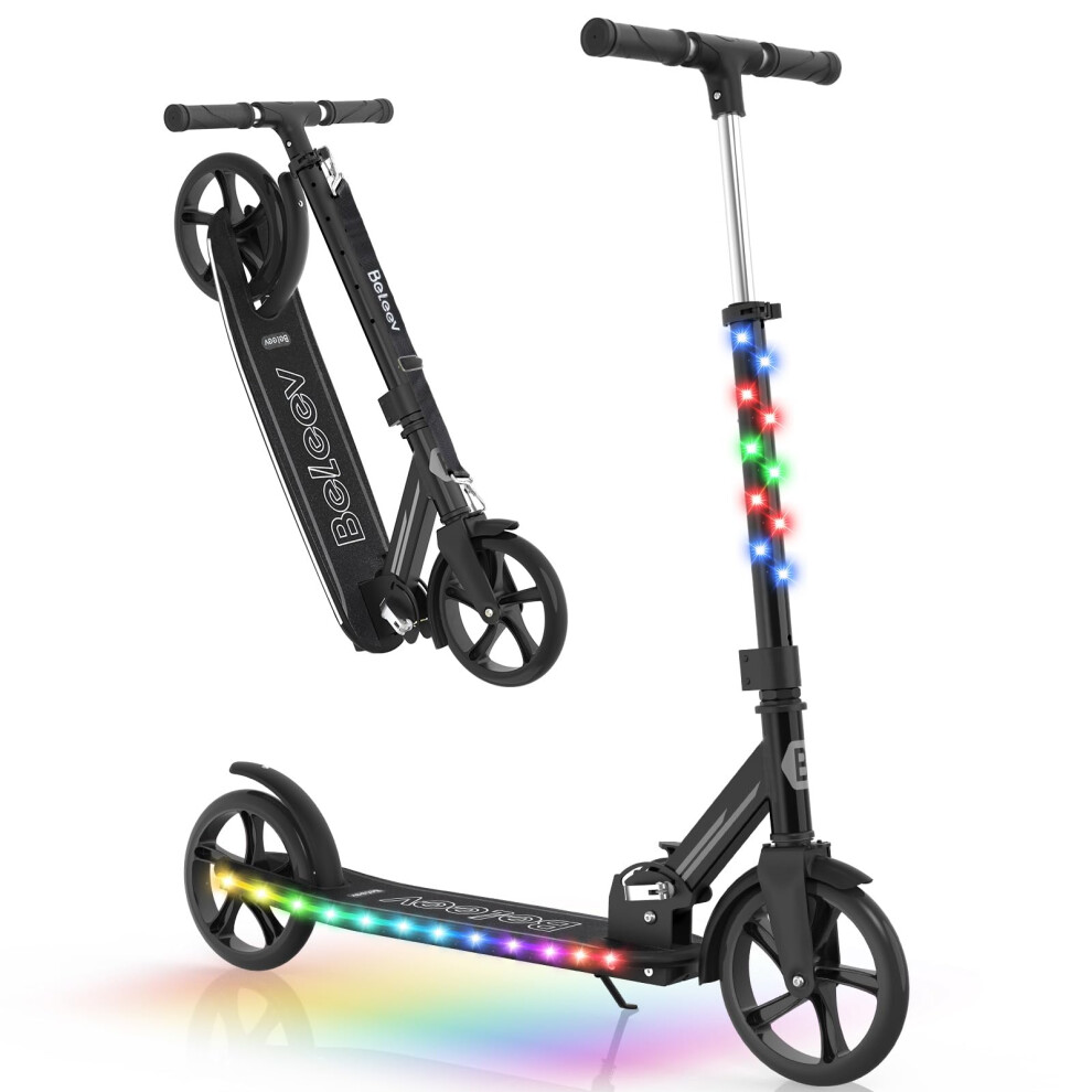BELEEV V9 Scooters for Kids Ages 6+ with Light-Up Stem & Deck, 2 Wheel Folding Scooter for Adults Teens, Big Wheel Lightweight Scooter for Boys and