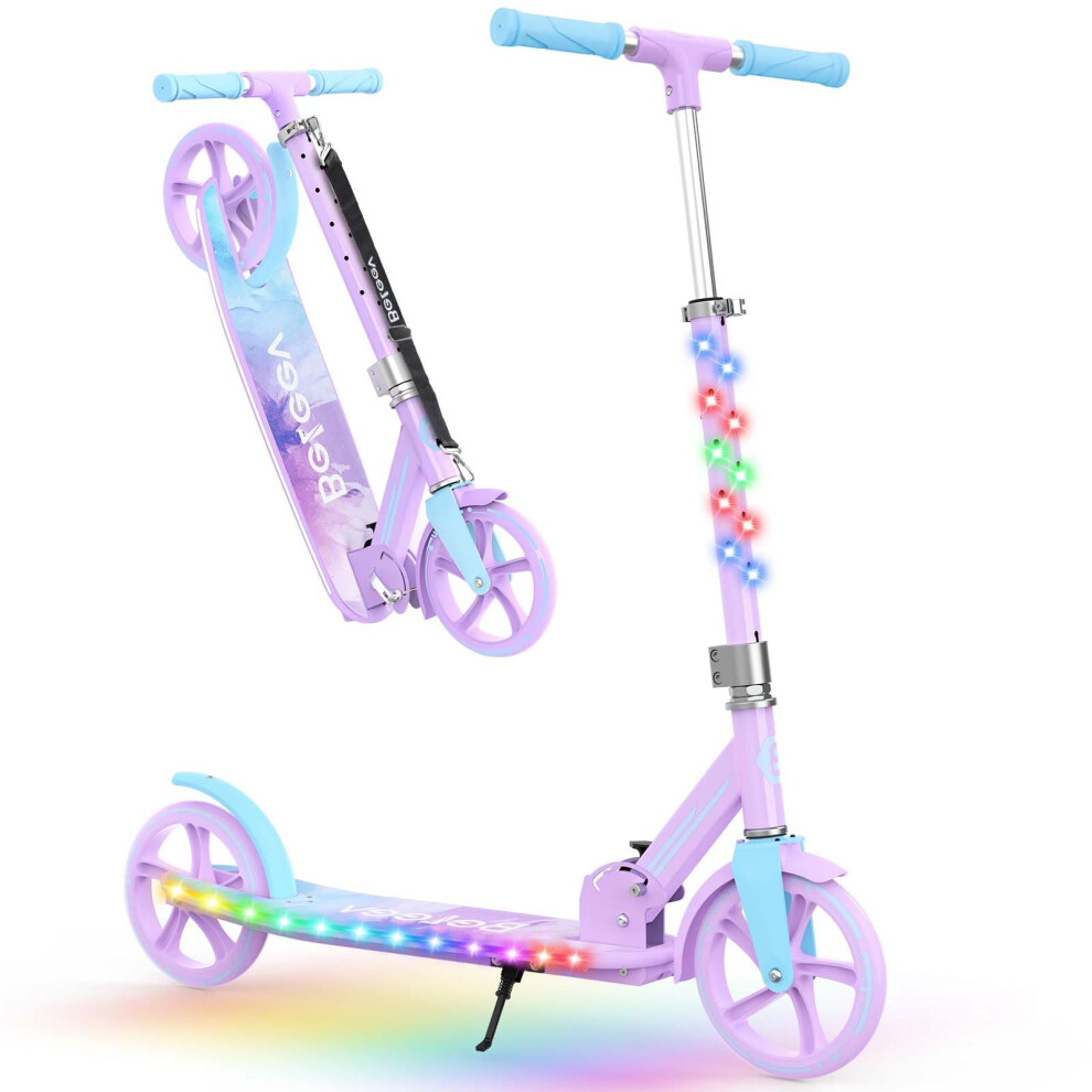 BELEEV V9 Scooters for Kids Ages 6+ with Light-Up Stem & Deck, 2 Wheel Scooter for Adults Teens, Big Wheel Scooter for Boys and Girls, 4 Adjustable Height, Max Load 220 lbs(Galaxy Purple)
