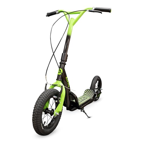 Zinc Radikal BMX Scooter for Kids Ages 6+ – 12 Inch Big Wheel Stunt Scooters with 360 Degree Handlebar Spin, Height Adjustable, Front & Rear Brakes, Steel Frame, Off-Road Tyres, Green & Black