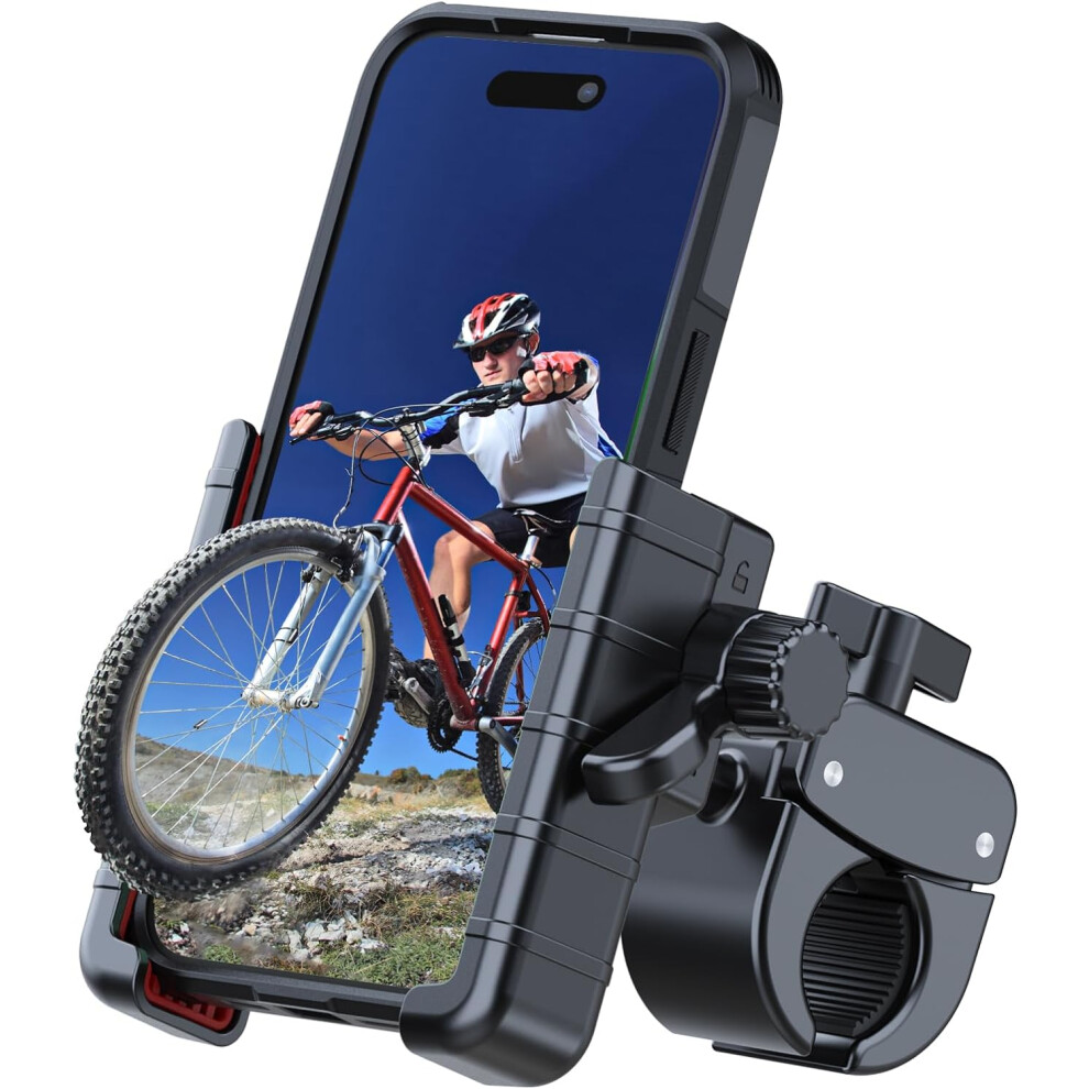(Black/Red) Bike Phone Mount Holder [Camera Friendly] Motorcycle Handlebar Cell Phone Mount for Electric Scooter, Mountain, Dirt Bike and Stroller, Ph